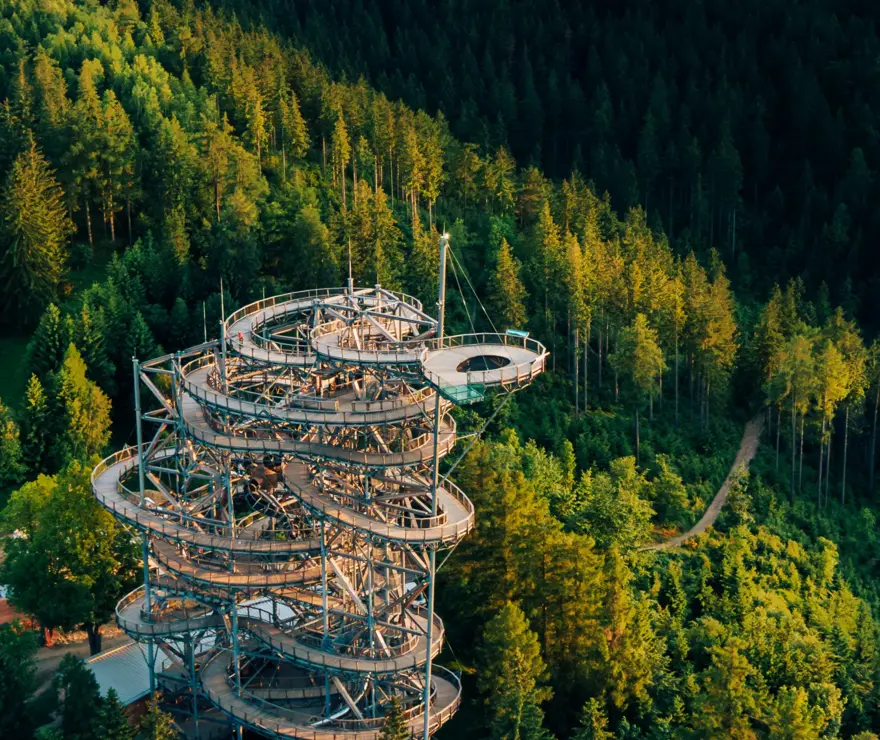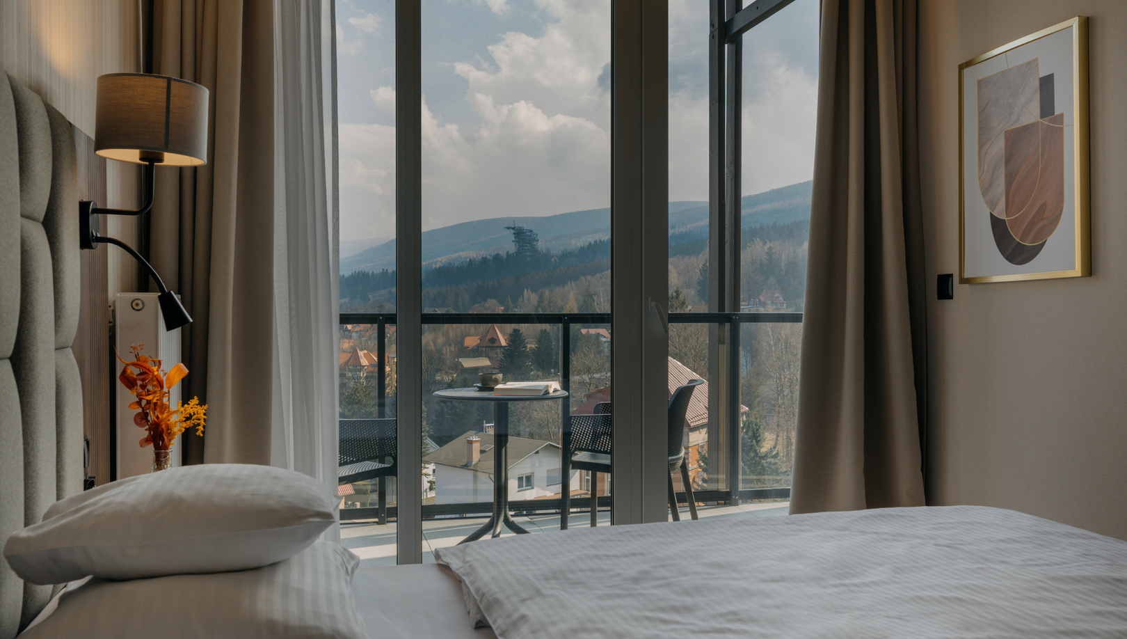 Z tej wysokości rozciąga się malowniczy pejzaż Gór Izerskich i urokliwego Świeradowa-Zdroju - magiczny o każdej porze dnia. To idealne miejsce, by rozpocząć dzień przy filiżance aromatycznej kawy w blasku wschodzącego słońca lub zakończyć, podziwiając zachód.