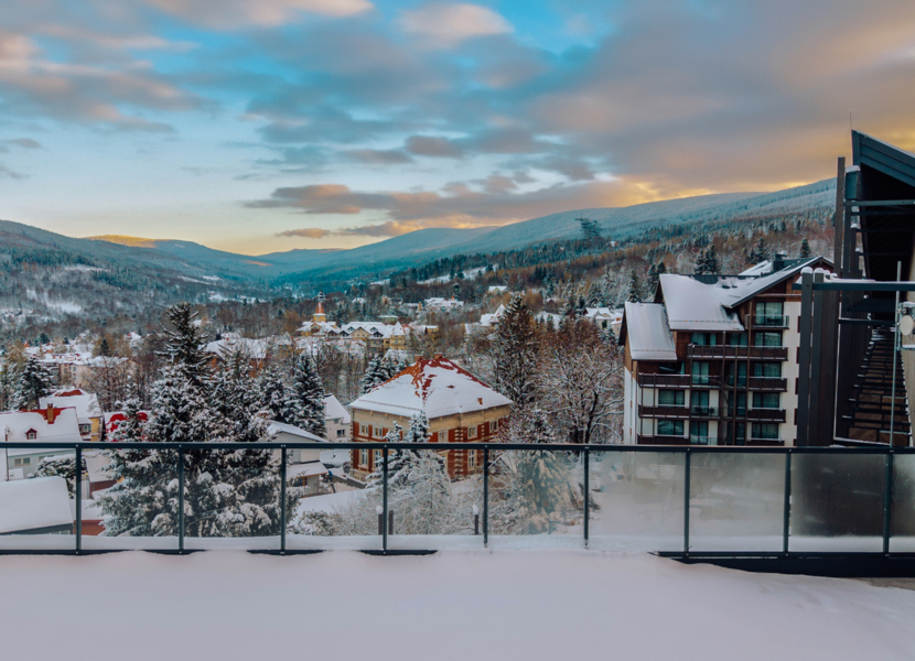 Na najwyższym piętrze Elements Hotel & SPA czeka na Ciebie wyjątkowy taras widokowy, z którego roztacza się zachwycająca panorama gór.