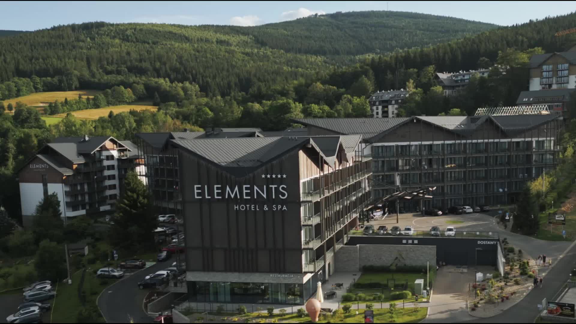 Elements Hotel & Spa został stworzony z dbałością o szczegóły, składa się z trzech skrzydeł, które tworzą między sobą kąty 120 stopni, co pozwala z niemal każdego pokoju podziwiać niecodzienny górski widok. Elewacja nawiązuje do tradycyjnych elementów architektury w regionie, to połączenie drewna, kamieni, jasnego betonu i szkła. Wszystko to sprawia, że obiekt wpisuje się w pełni w wyjątkowy krajobraz malowniczej miejscowości w Sudetach.