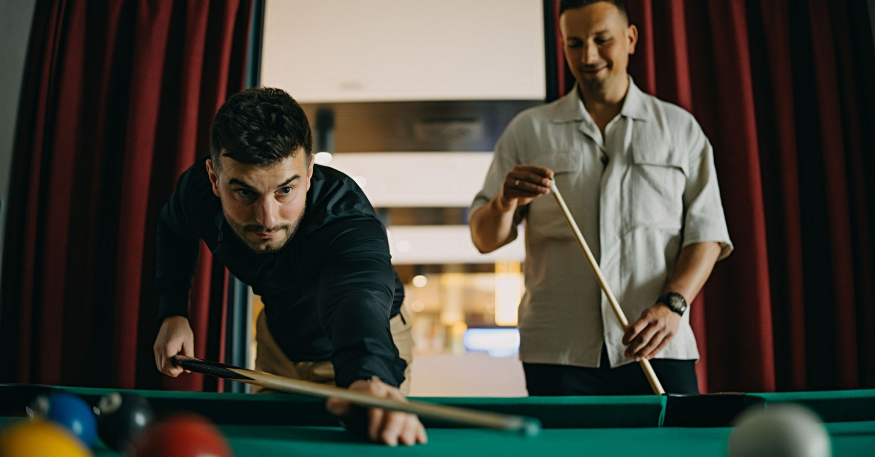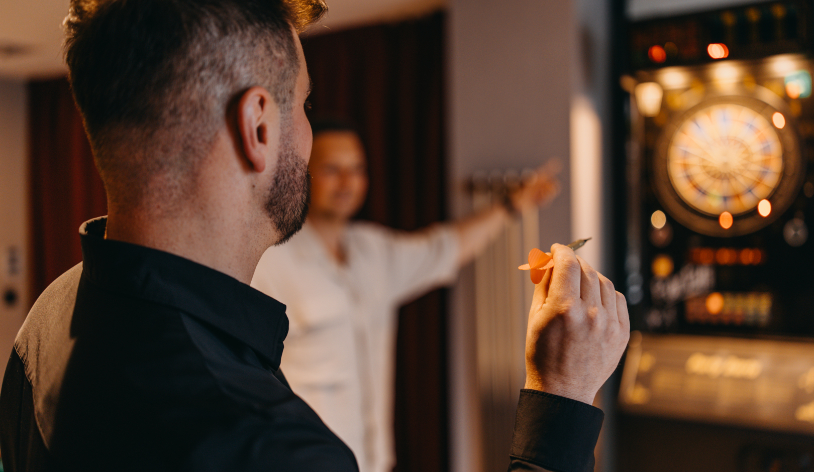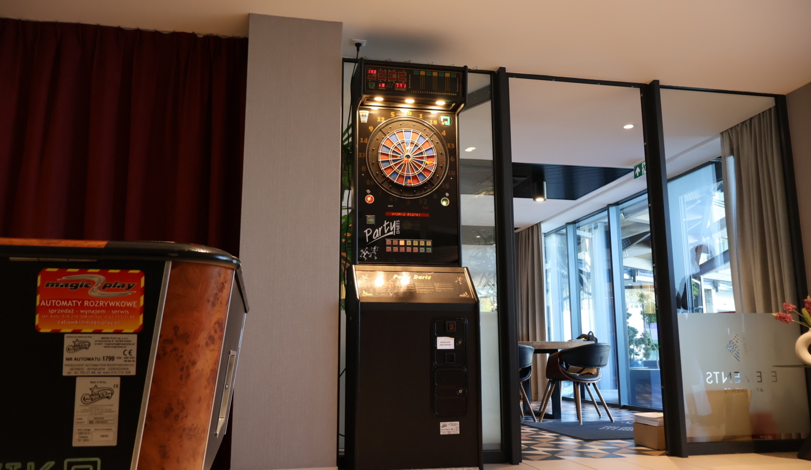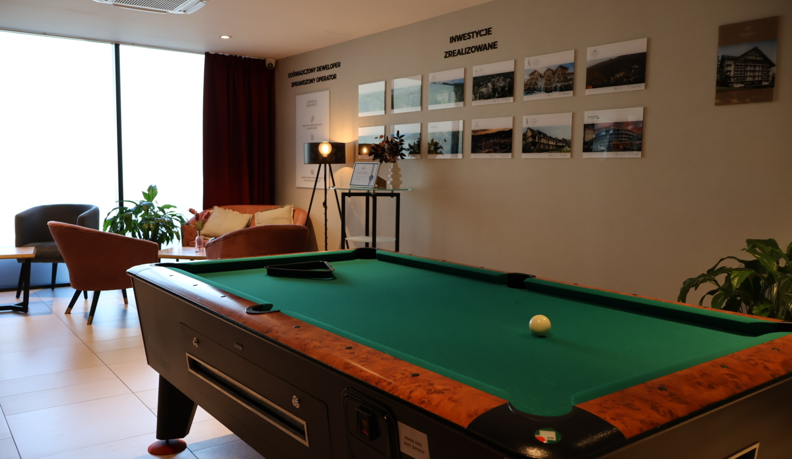 W hotelowym lobby stworzyliśmy przytulne miejsce stworzone z myślą o relaksie i dobrej zabawie. Znajdują się tu stół do bilarda oraz tarcza do gry w lotki, dzięki czemu Goście mogą spędzać czas w swobodnej atmosferze, rywalizując przy klasycznych grach towarzyskich. To idealna przestrzeń na wieczorny odpoczynek, integrację i chwilę rozrywki po aktywnym dniu.