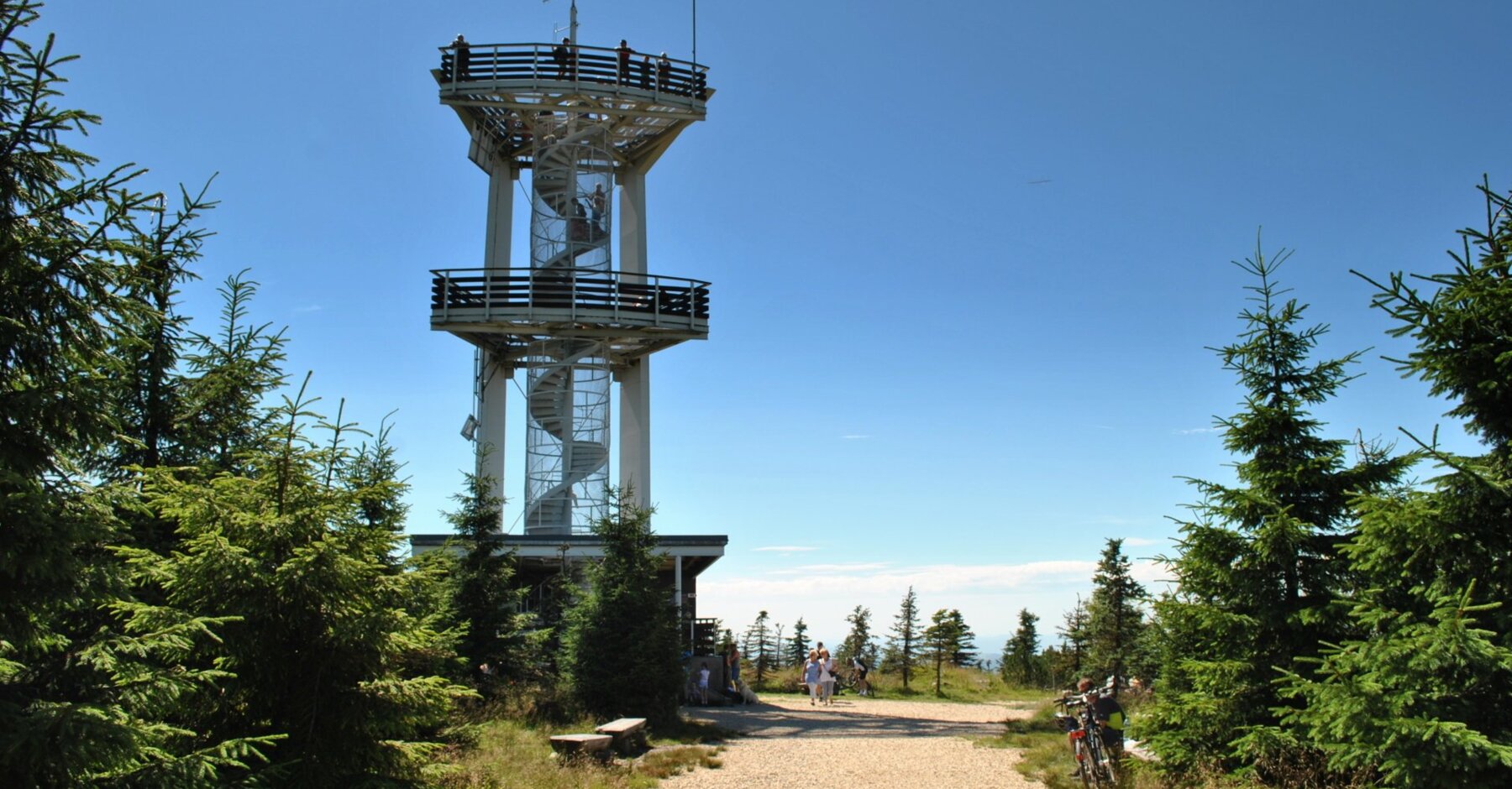 Located on the Czech side of the Jizera Mountains, the 20-meter-high observation tower on Smrek is a steel construction that opened to the public in 2003. You can admire the panorama of the mountains from two terraces. There is a small buffet at the foot of the tower.