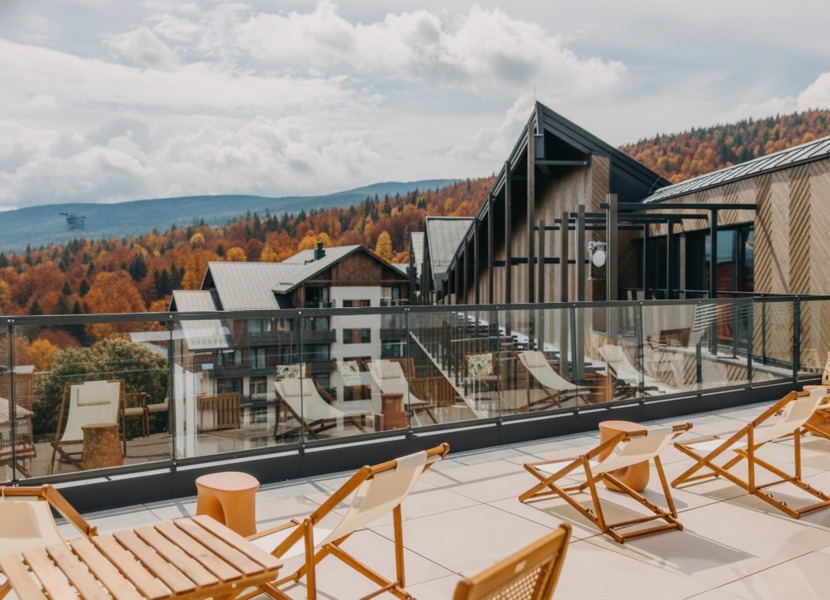 From this height, you can admire the picturesque landscape of the Izera Mountains and the charming town of Świeradów-Zdrój – magical at any time of day. It is the perfect place to start your morning with a cup of aromatic coffee in the glow of the rising sun, or to end the day while watching the sunset.